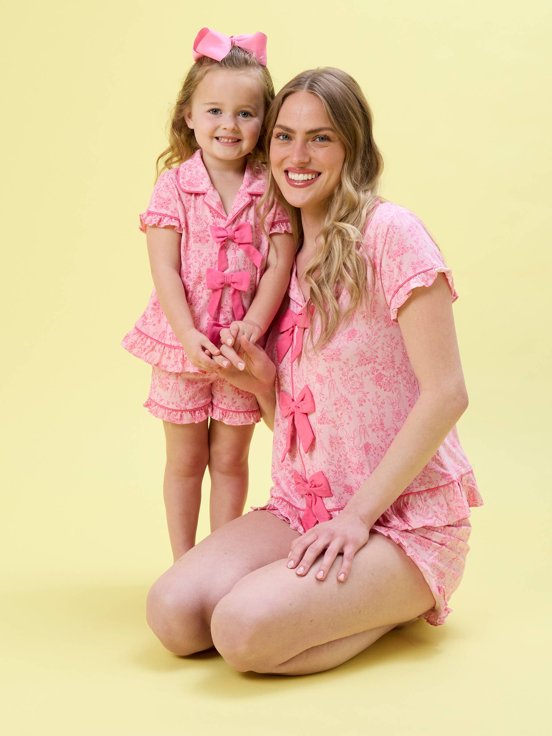 SoftSnooze™ Women's Bamboo Viscose Pink Cottontail Toile Short Sleeve Bow Ruffle Pajama Set