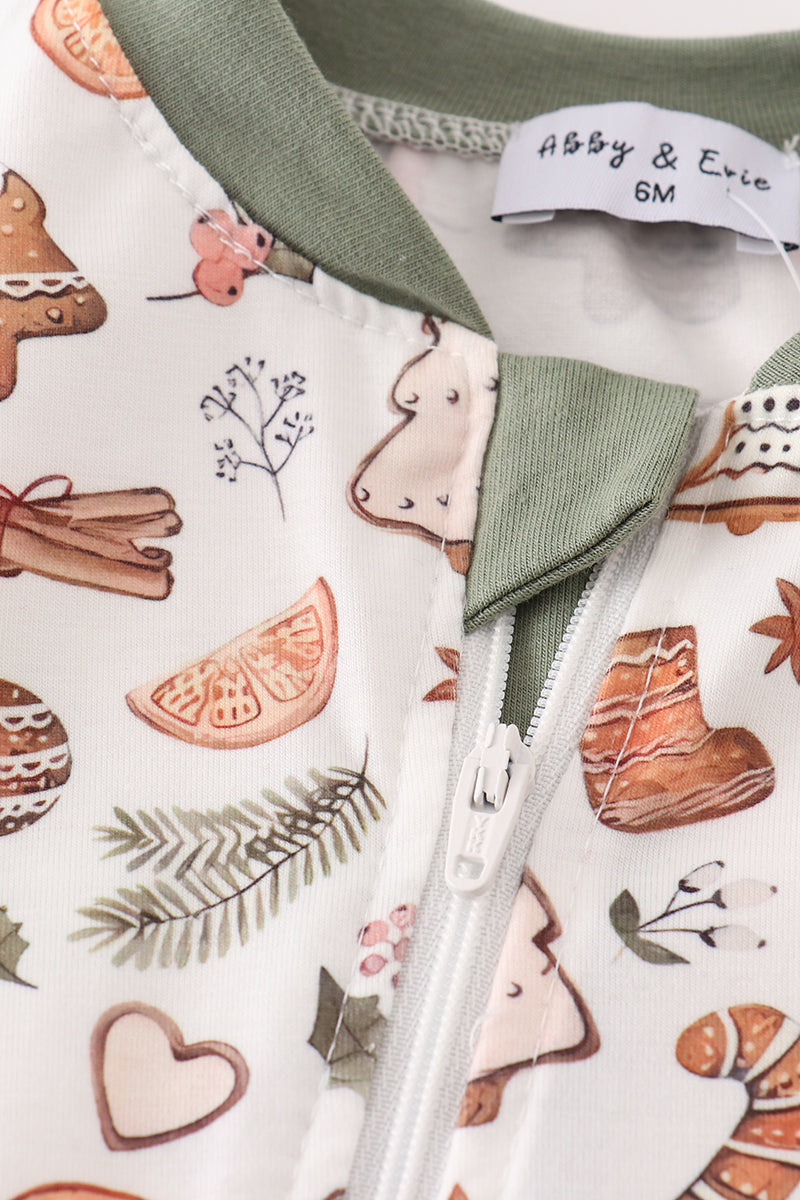 Get ready to jingle all the way with our Gingerbread Christmas Print Zippy Boy Romper! This festive, zip up romper features a fun and playful design that will make your little one the star of any holiday party. Made with a convenient zip closure for easy diaper changes and includes the sweetest button bottom details. Ho ho ho-liday ready!