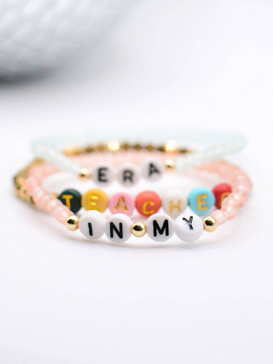 Letter bead bracelet featuring the phrase In My Teacher Era