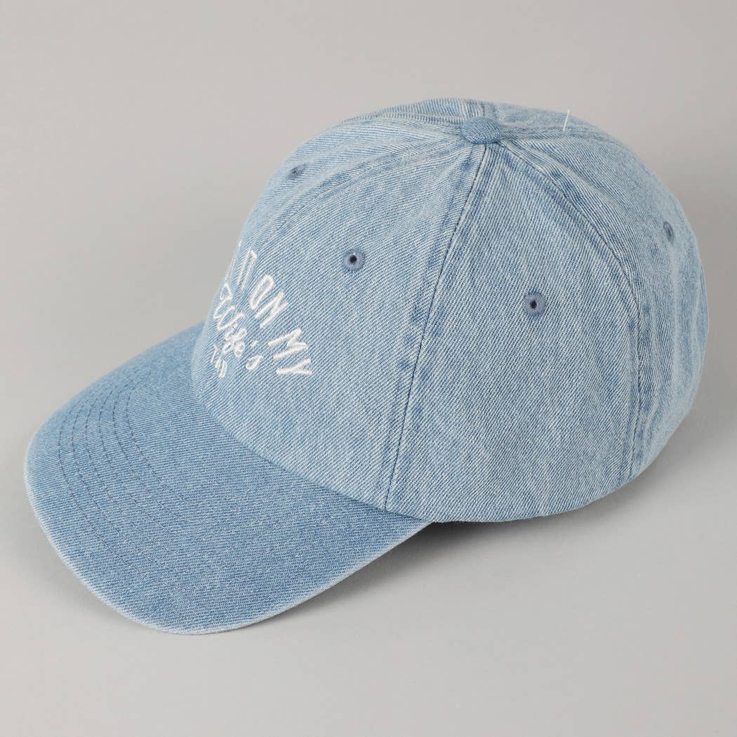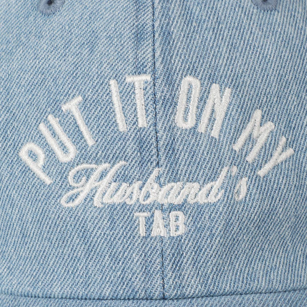Put It On My Husband's Tab Women's Embroidery Denim Cap: Denim & White